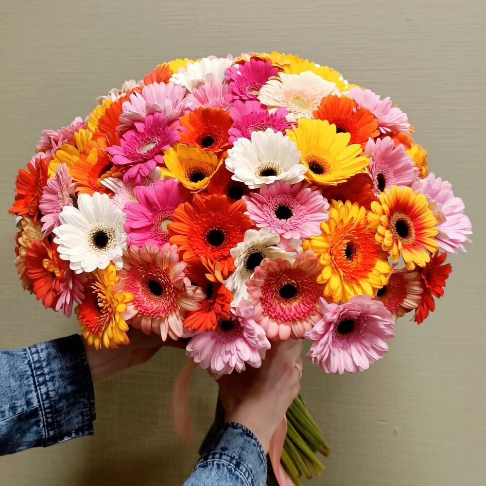 Лента атласная – 2 шт.Гербера – 101 шт.