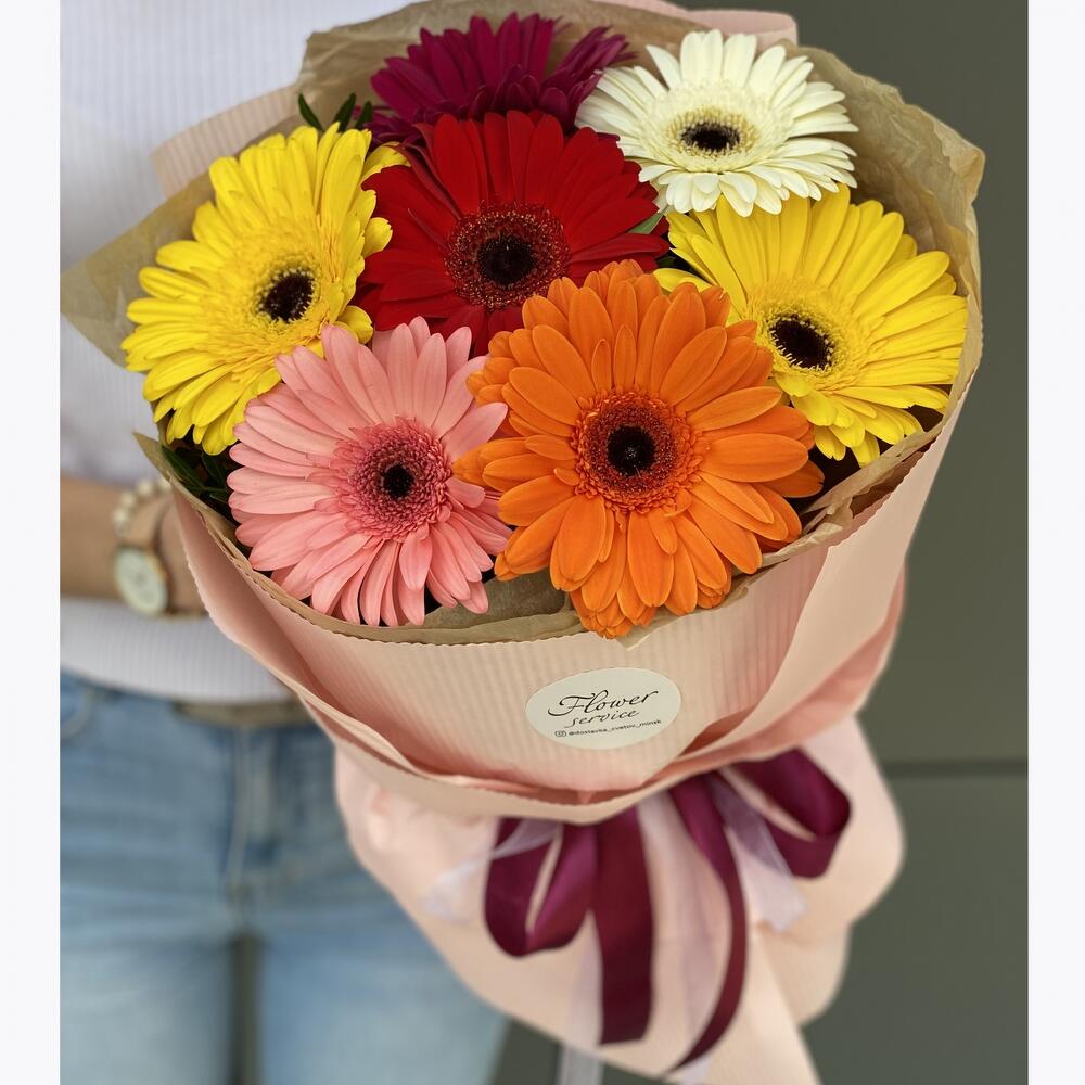 Писташ – 1 шт. Гербера – 7 шт. Оформление – 1 шт.
