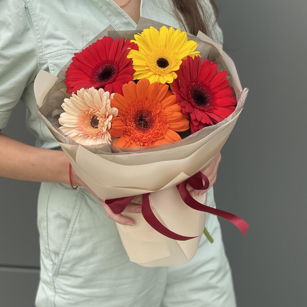 Гвоздики, Герберы, Кустовые розы, Пионовидные розы, Розы