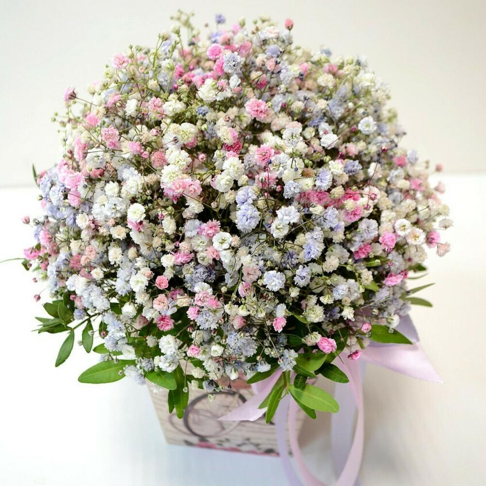 Букет цветной гипсофилы в коробочке