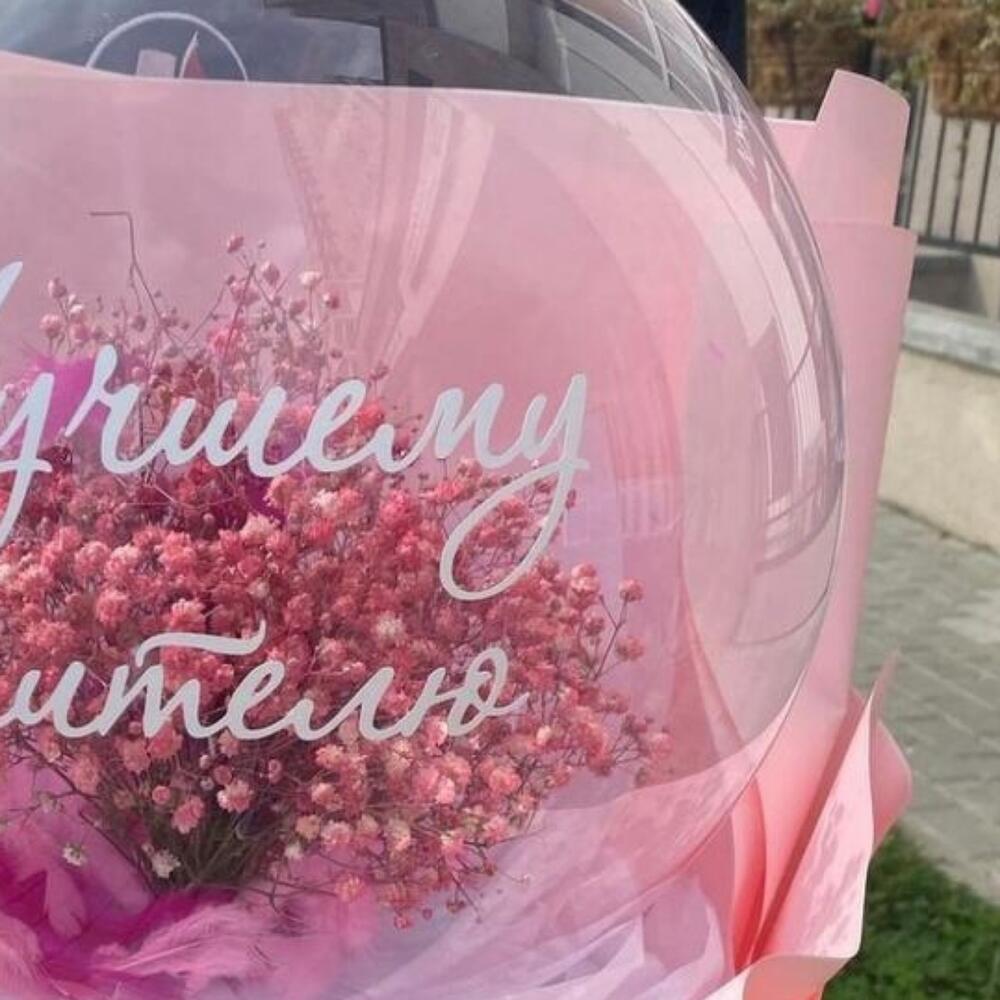 Гипсофила – 2 шт.Лента атласная – 2 шт.Пленка матовая – 6 шт.наклейка фирменная – 1 шт.шар бабл – 1 шт.