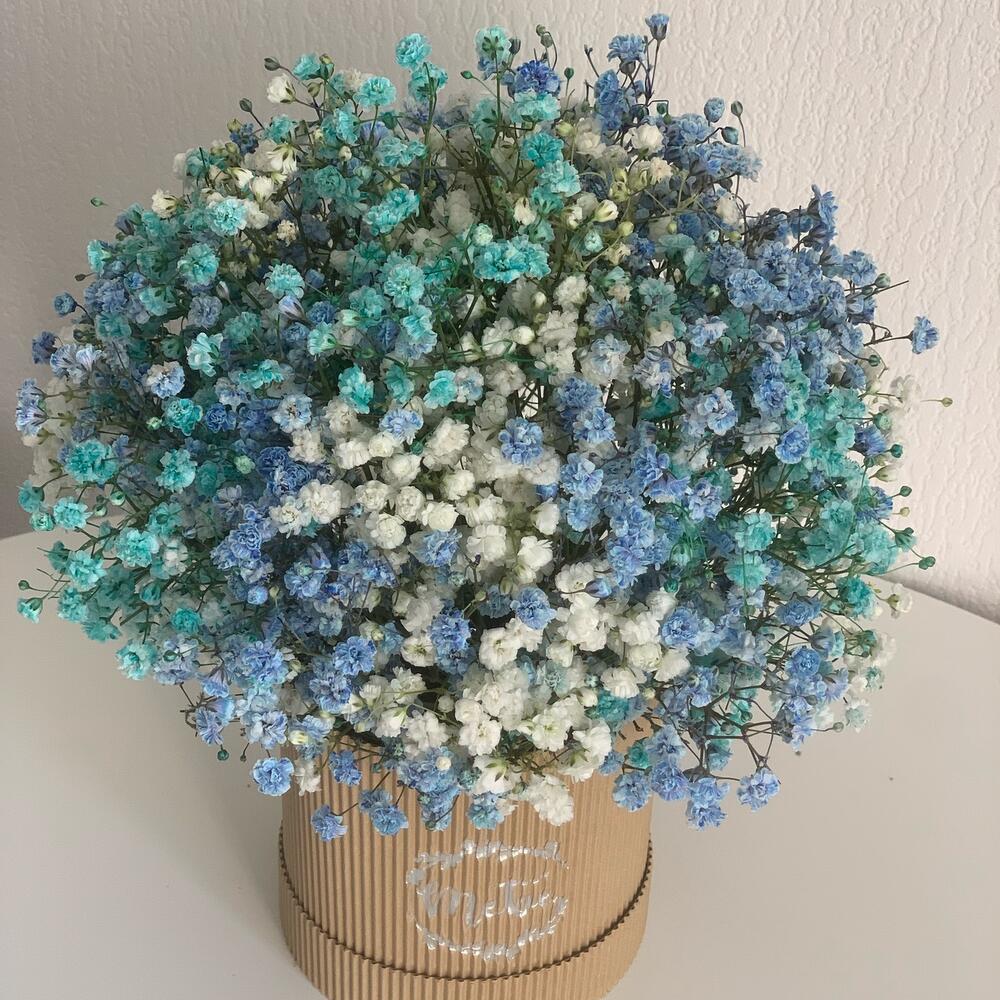 Голубое облачко гипсофилы в шляпной коробке