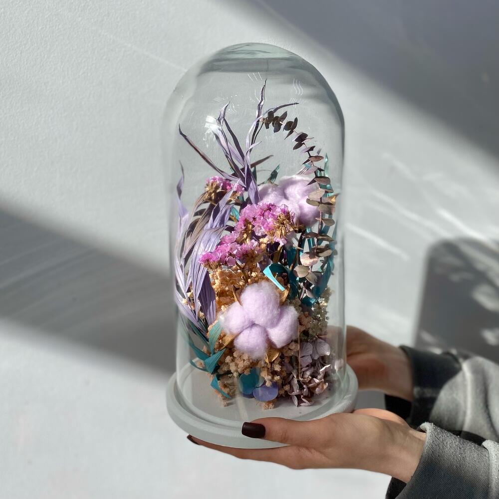 «Лавандовое созвездие» Букет из розы, гвоздики, статица и хлопка