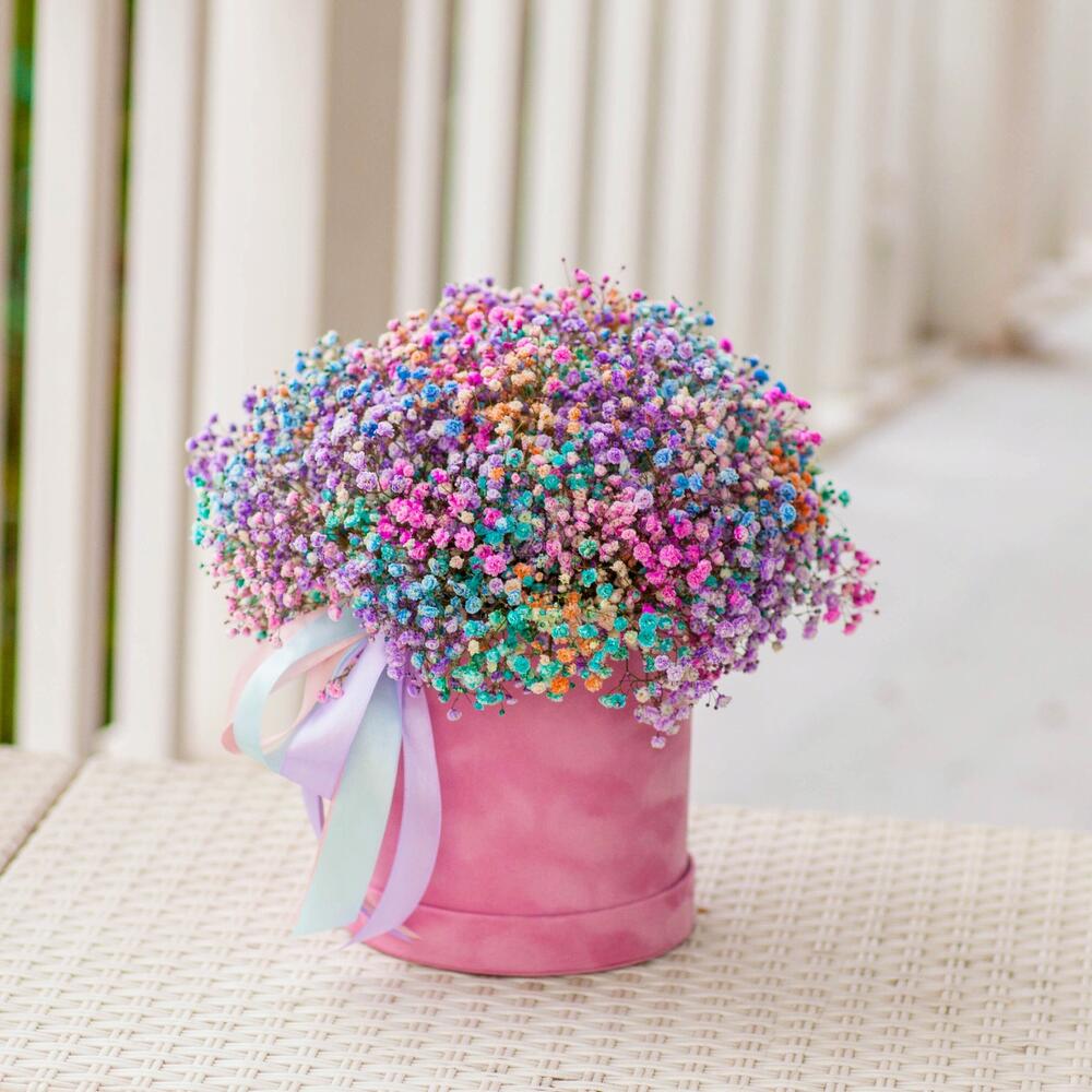 Бархатная коробка с яркой композицией из гипсофилы