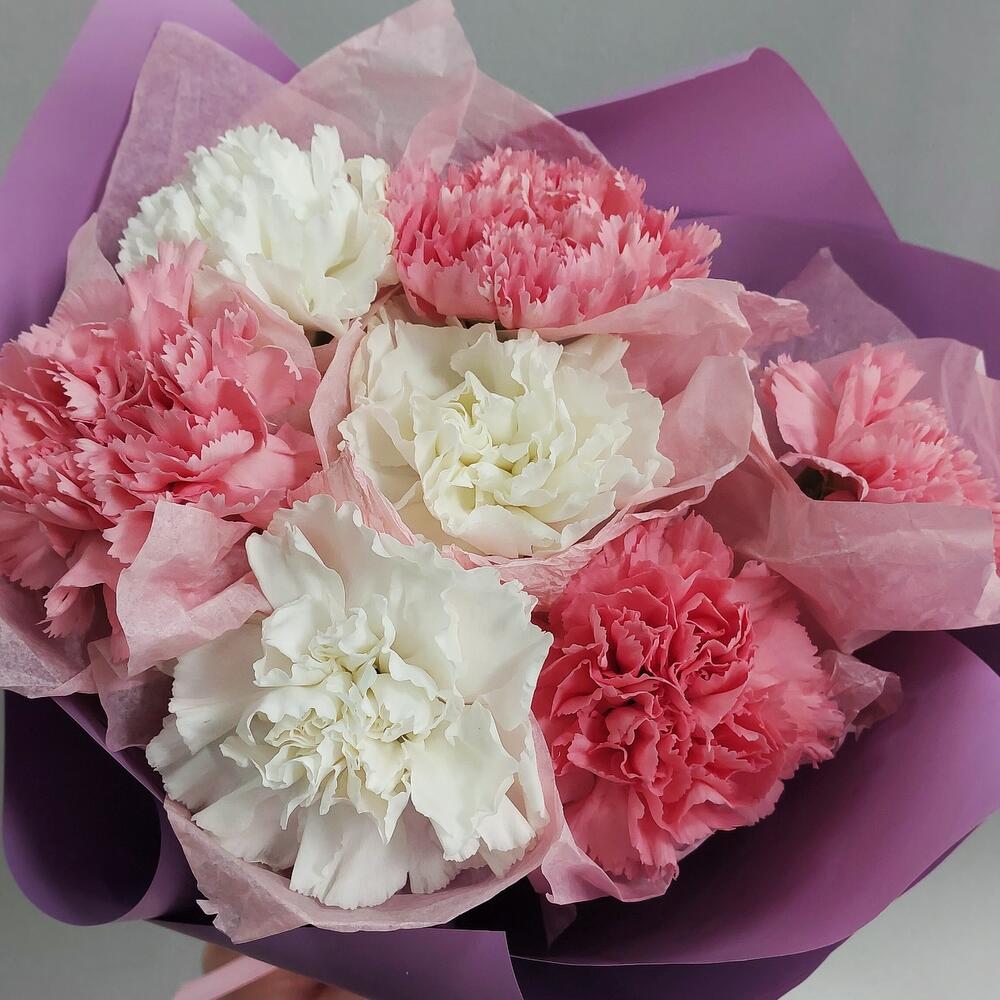 Лента атласная – 1 шт.Тишью – 7 шт.Диантус – 7 шт.Упаковка дизайнерская – 1 шт.
