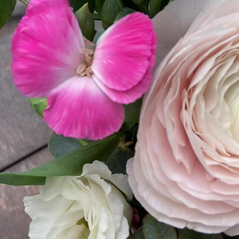 Лизиантус – 1 шт.Эвкалипт – 1 шт.Ранункулюс – 1 шт.Оазис флористический – 1 шт.стакан кофейный – 1 шт.шоколад счастье – 1 шт.соломиа гвоздика – 2 шт.