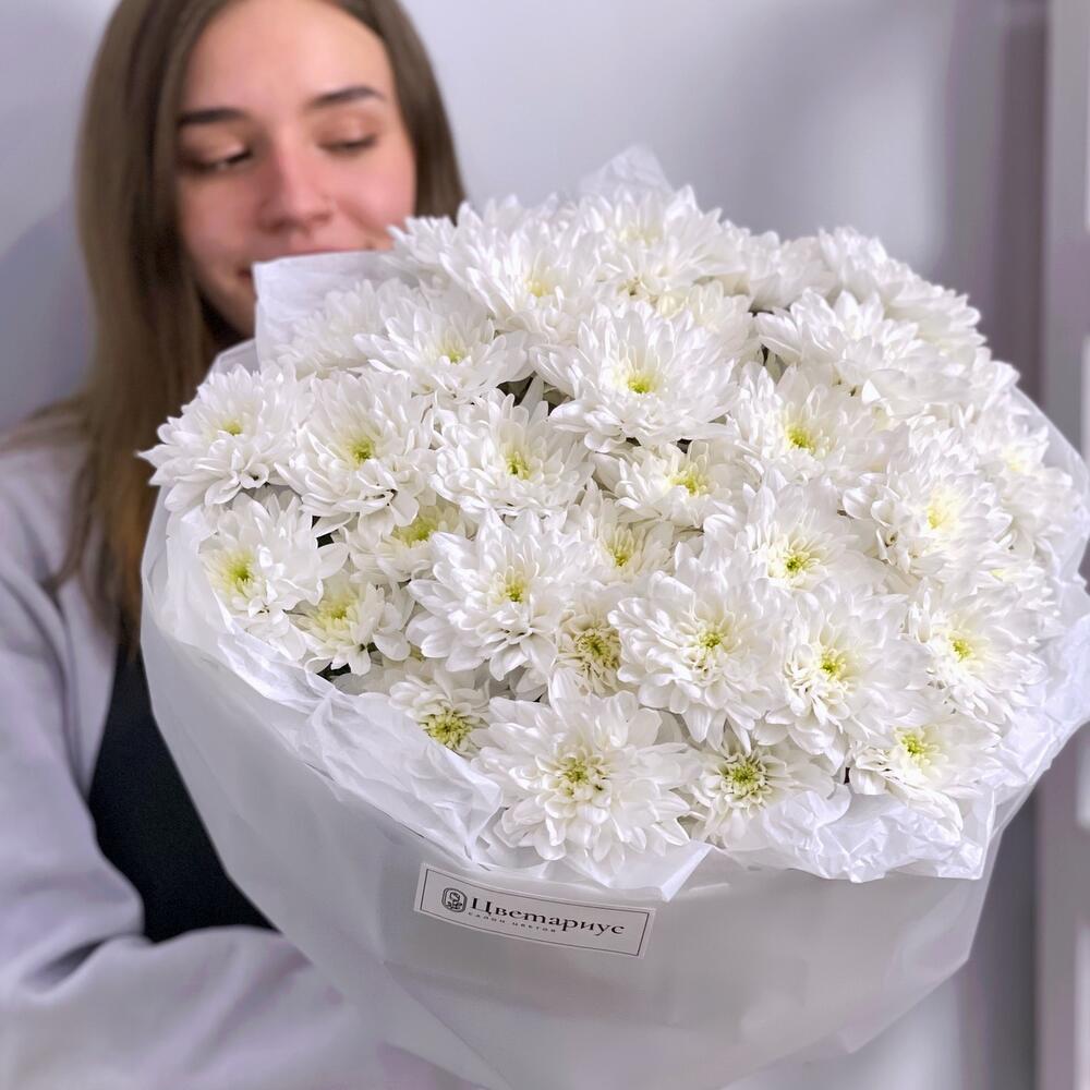 Стильный и очень стойкий монобукет из белых кустовых хризантем.Пушистое облако снова в тренде! Букет непременно порадует ту, которую Вы любите!