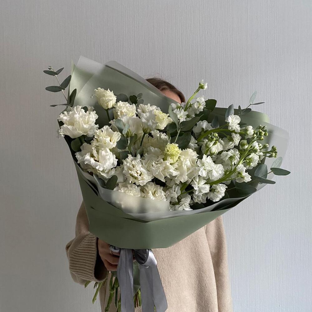 Эвкалипт – 2 шт.Маттиола белая – 8 шт.эустома белая – 7 шт.