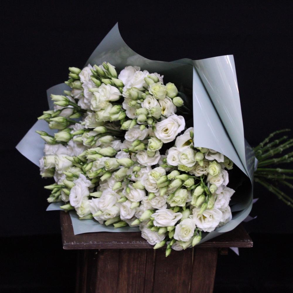 Лента атласная – 1 шт.эустома белая – 21 шт.Пленка дизайнерская – 2 шт.