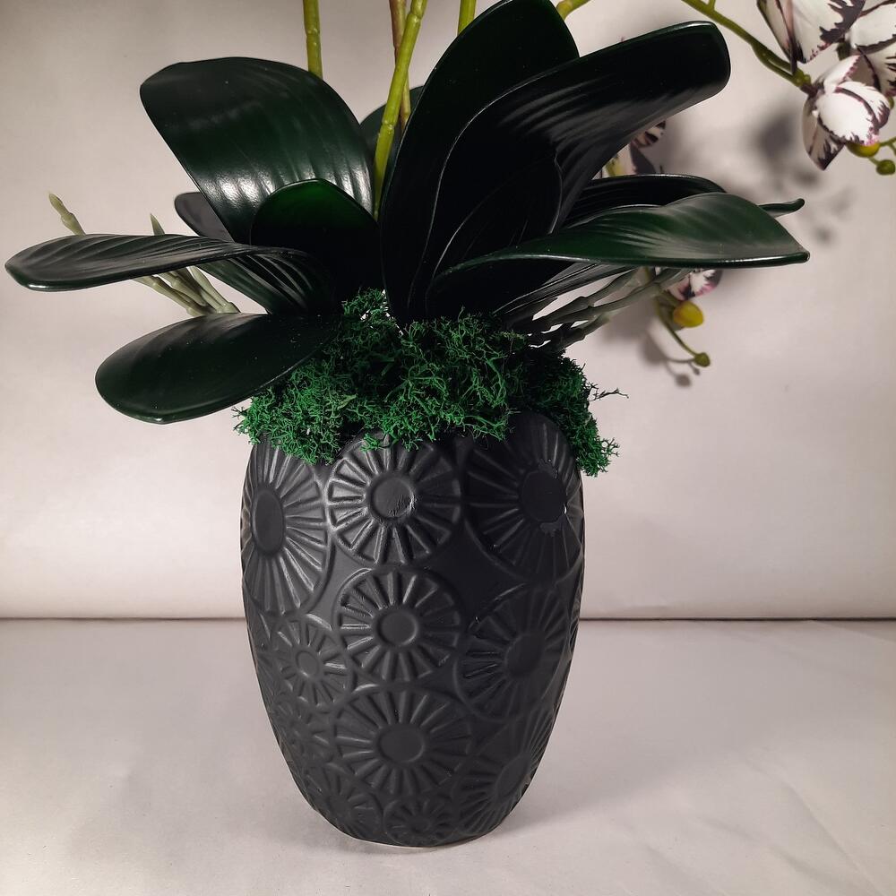 Кашпо керамическое – 1 шт.Мох стабилизированный – 3 шт.орхидея фаленопсис ветка искусственная – 6 шт.