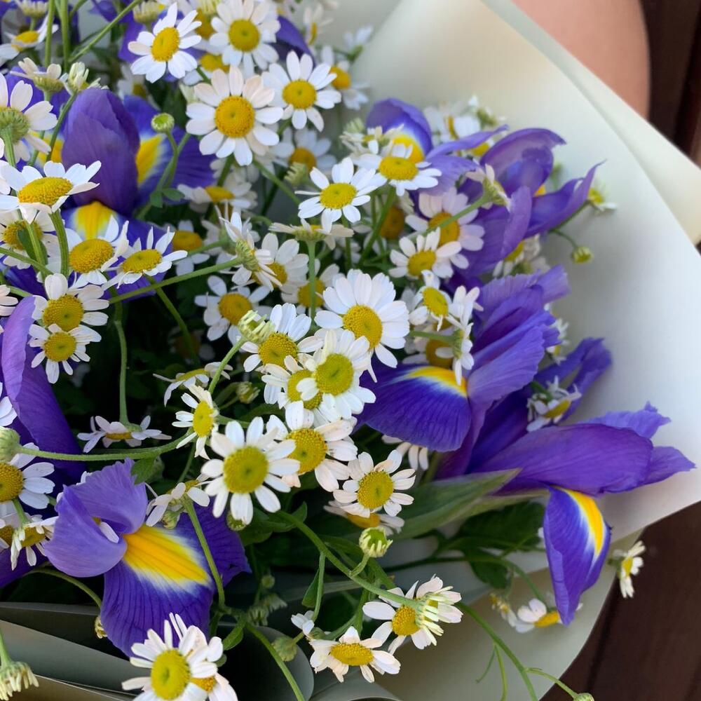 Букет с ромашками и ирисами