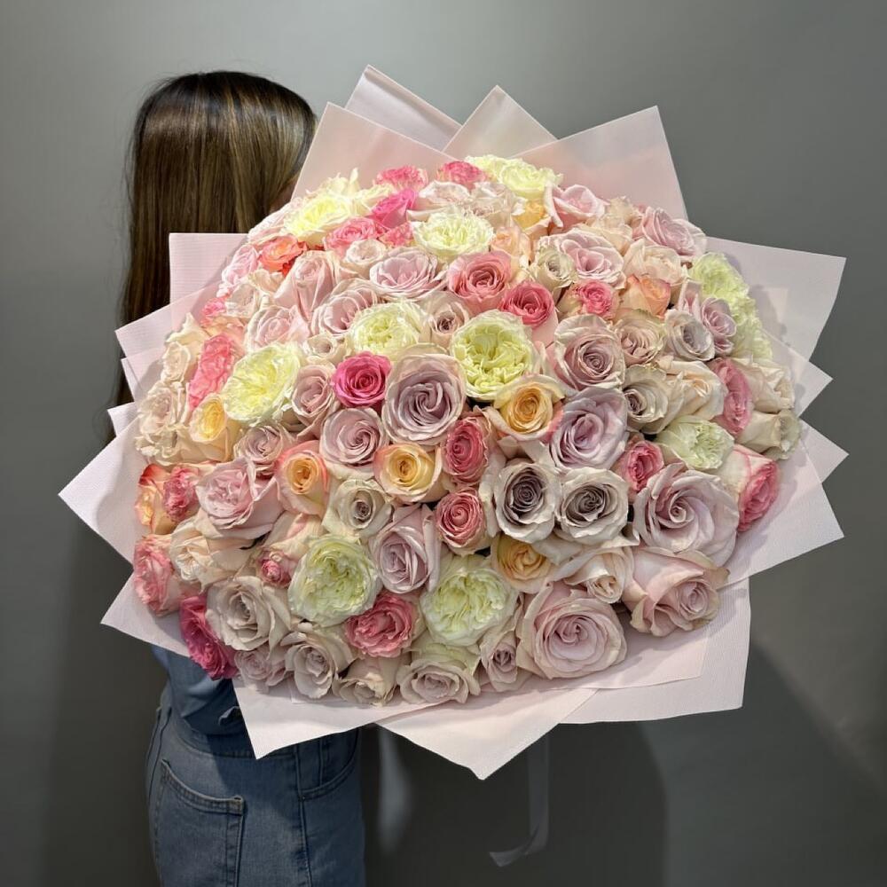 Гвоздики, Кустовые розы, Лизиантусы, Пионовидные розы, Розы