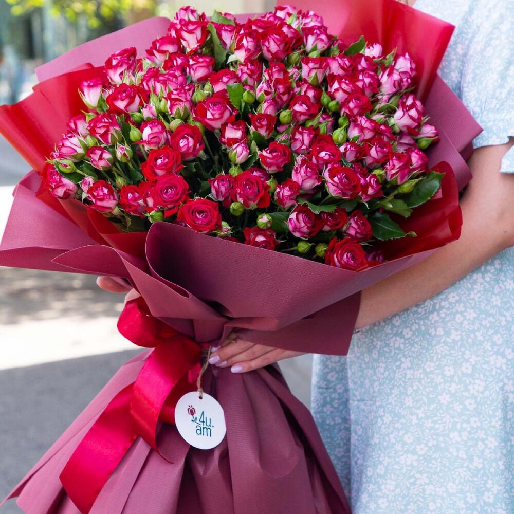 Гвоздики, Кустовые розы, Пионовидные розы, Розы