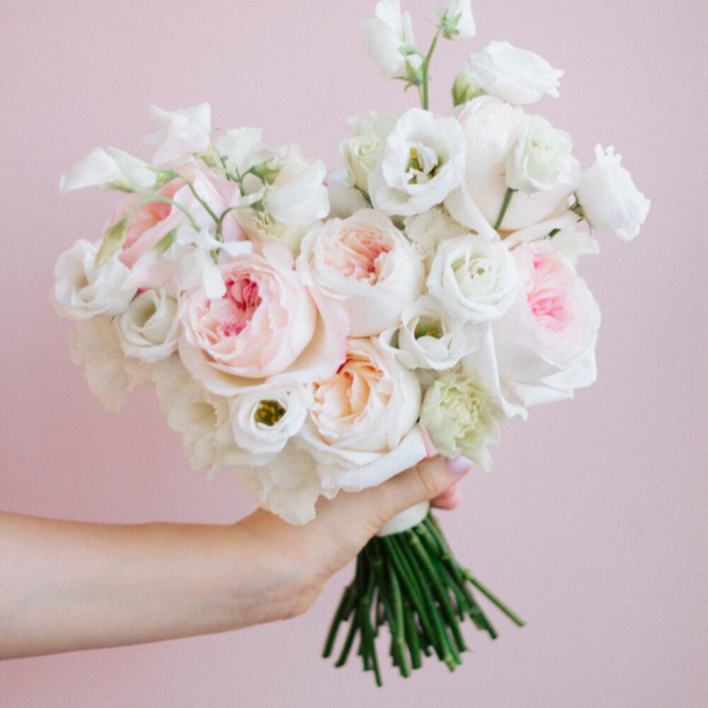 Букет невесты раскидистой формы в розовой гамме