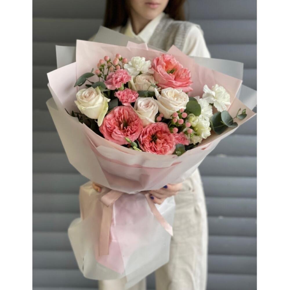 Гвоздики, Лизиантусы, Розы, Тюльпаны