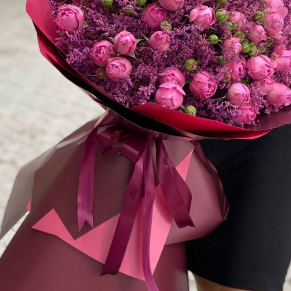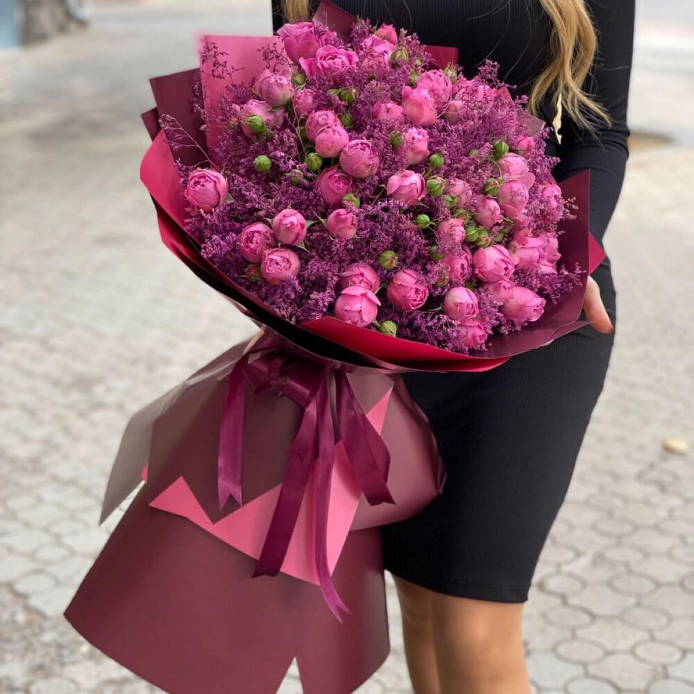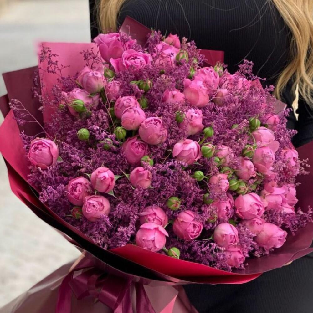 Гвоздики, Кустовые розы, Лизиантусы, Пионовидные розы, Розы