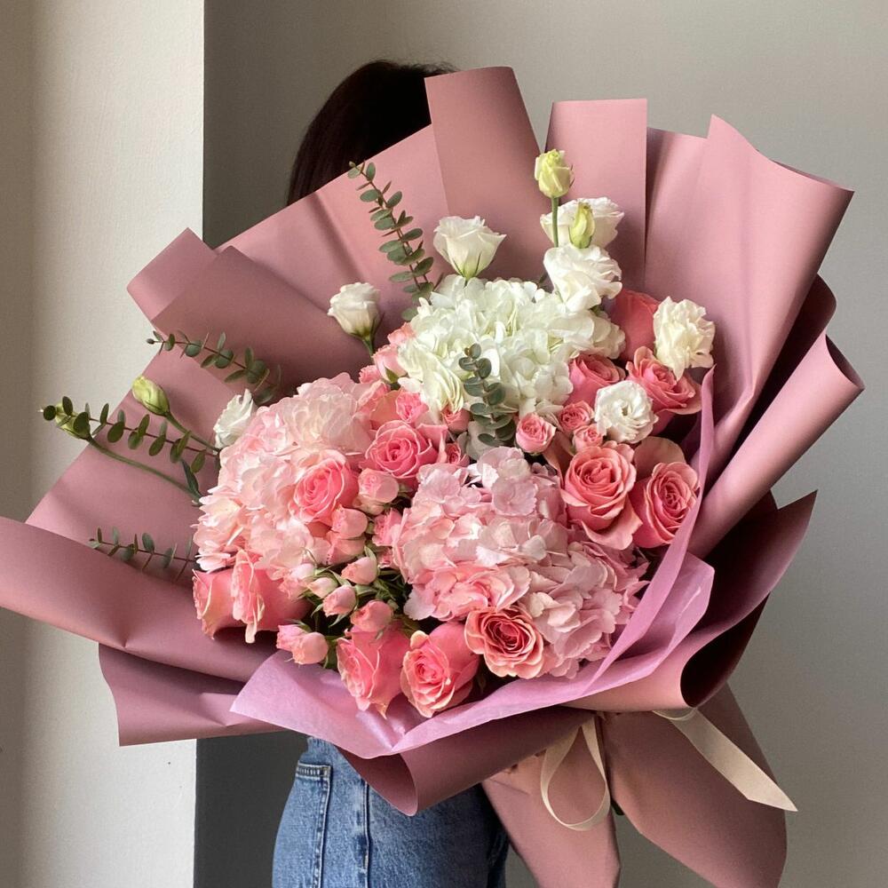 Гвоздики, Кустовые розы, Лизиантусы, Пионовидные розы, Розы