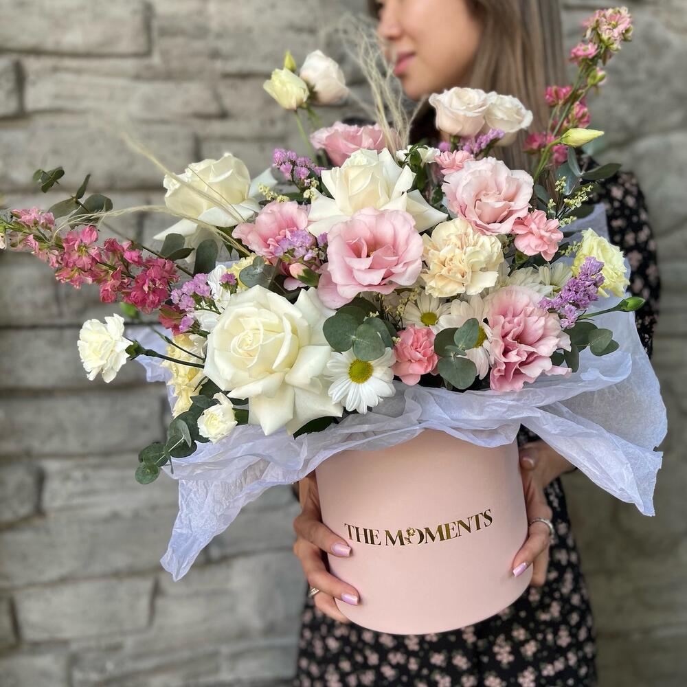Альстромерии, Кустовые розы, Лизиантусы, Пионовидные розы, Розы, Ромашки