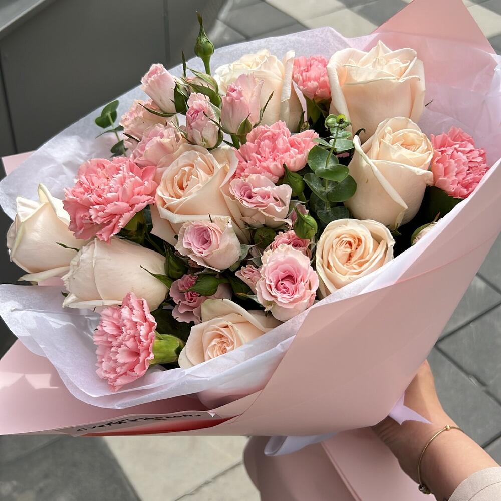 Гвоздики, Лизиантусы, Розы