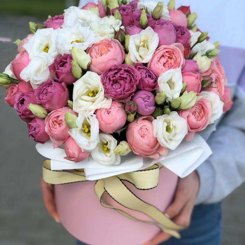 Коробка из пионовидных роз и эустомы!