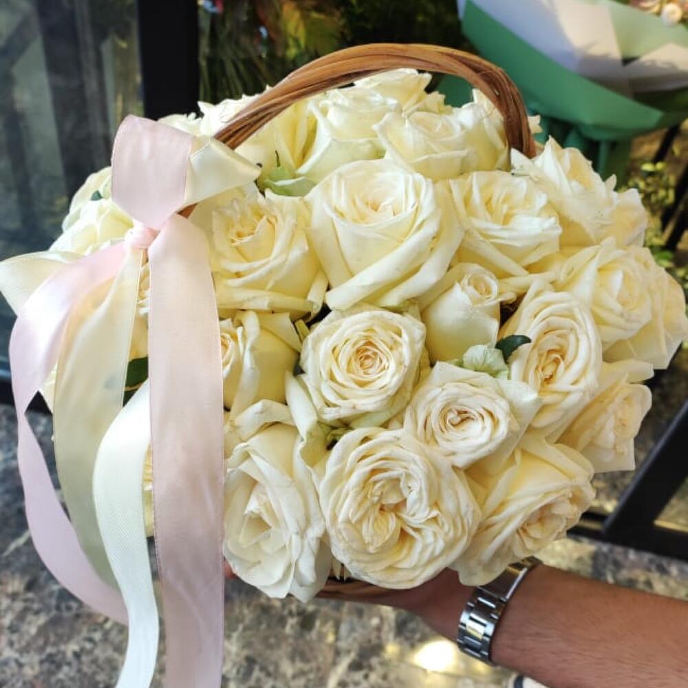 Метки: от 3000 до 4000 руб, Роза 30 см, Розы в корзине, цветы в корзине