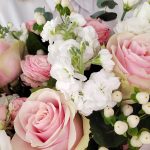 Нежный букет с розой «Бомбастик» и нежно-розовой эустомой